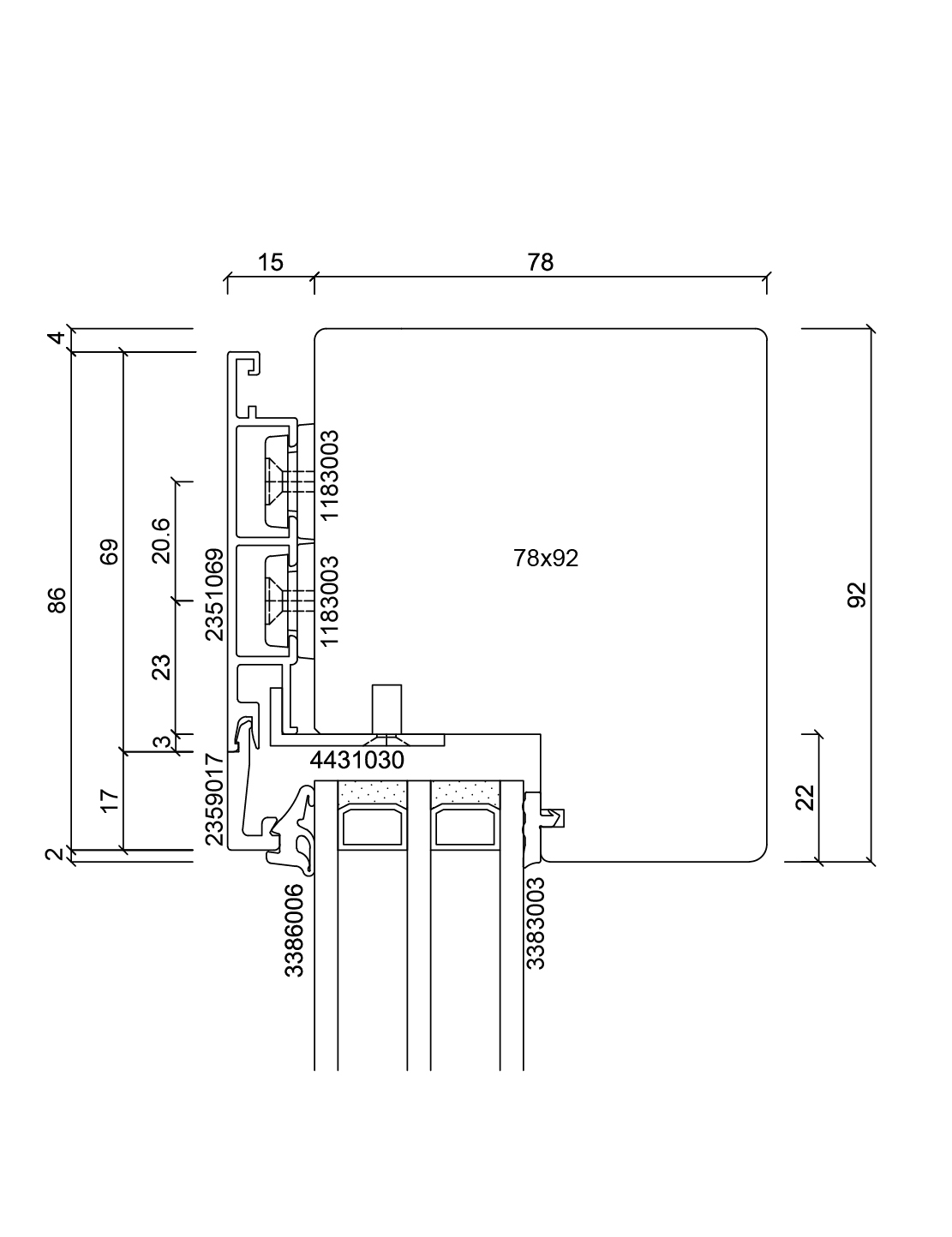 Rahmenprofil und Steckprofil bilden eine flächenbündige Ebene. Zwischen Glas und Rahmenprofil besteht ein Versatz von 15 mm Tiefe. Die Ansichtsbreite des sichtbaren Rahmenprofils beträgt 66 mm und verläuft gerade zur Glasebene. Bei bestimmten statischen Anforderungen kann das Rahmenprofil breiter ausgeführt werden. Die Entwässerung des Falzbereiches erfolgt durch verdeckte Stanzungen im unteren Profilquerstück des Rahmens. Optional kann eine sichtbare Entwässerung mit Abdeckkappe ausgeführt werden. Die Flügelwerte sind den kombinierbaren Systemen der FB Reihe entnommen.