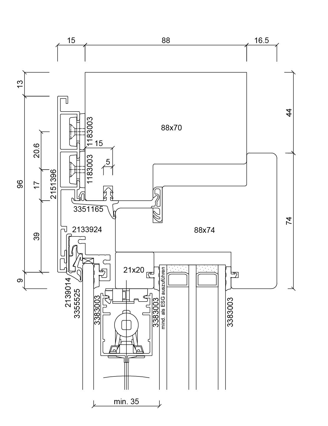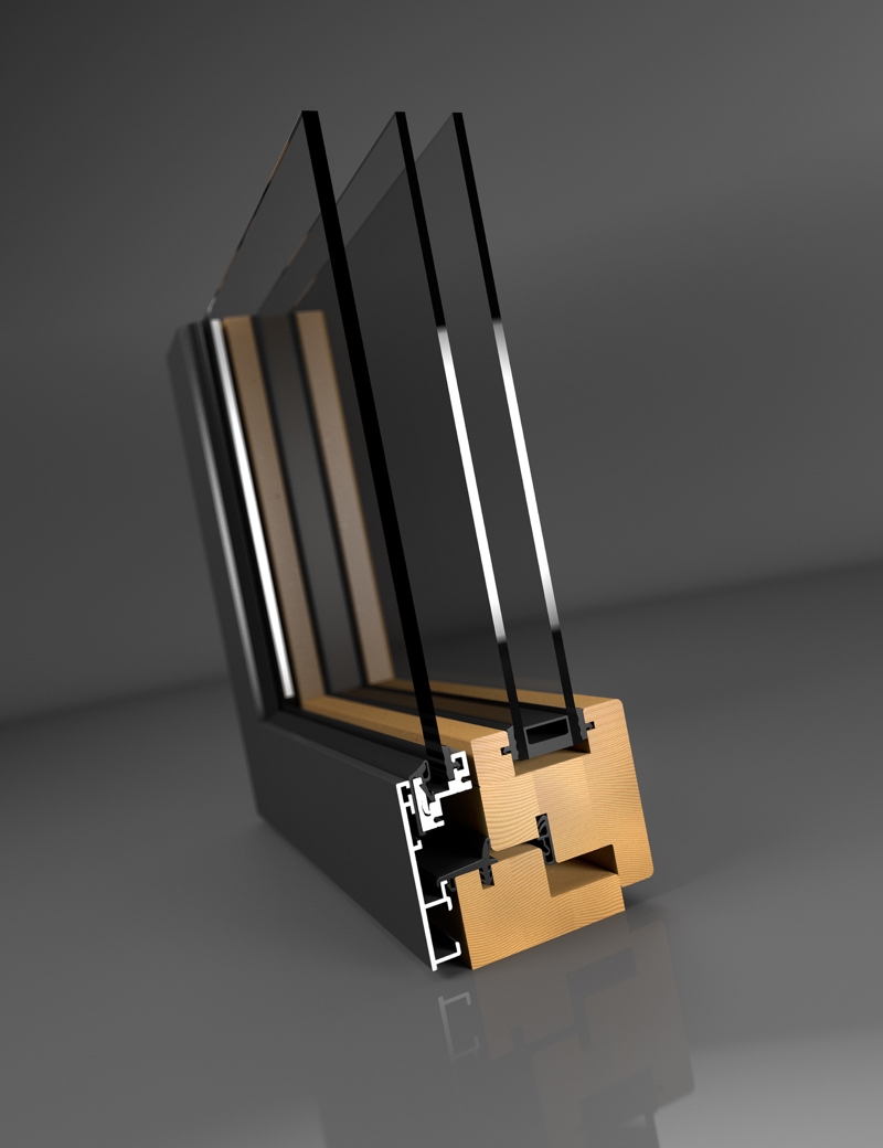 Die Hauptcharakteristik ist ein eigenständiger verglaster Flügelrahmen außen, der sich über ein Verbundbeschlagsystem öffnen lässt. Das Rahmenprofil verdeckt das Flügelprofil soweit, dass zwischen Festverglasungen und Öffnungselemente eine gleiche Rahmenansicht entsteht. Zwischen Glas und Flügelprofil besteht ein Versatz von 8 mm Tiefe. Die Konstruktion ist als Integralflügel oder Blockflügel definiert. Bei bestimmten statischen Anforderungen kann das Flügelprofil breiter ausgeführt werden. Die Entwässerung des Falzbereiches erfolgt durch verdeckte Stanzungen im unteren Profilquerstück des Rahmens. Optional kann eine sichtbare Entwässerung mit Abdeckkappe ausgeführt werden.