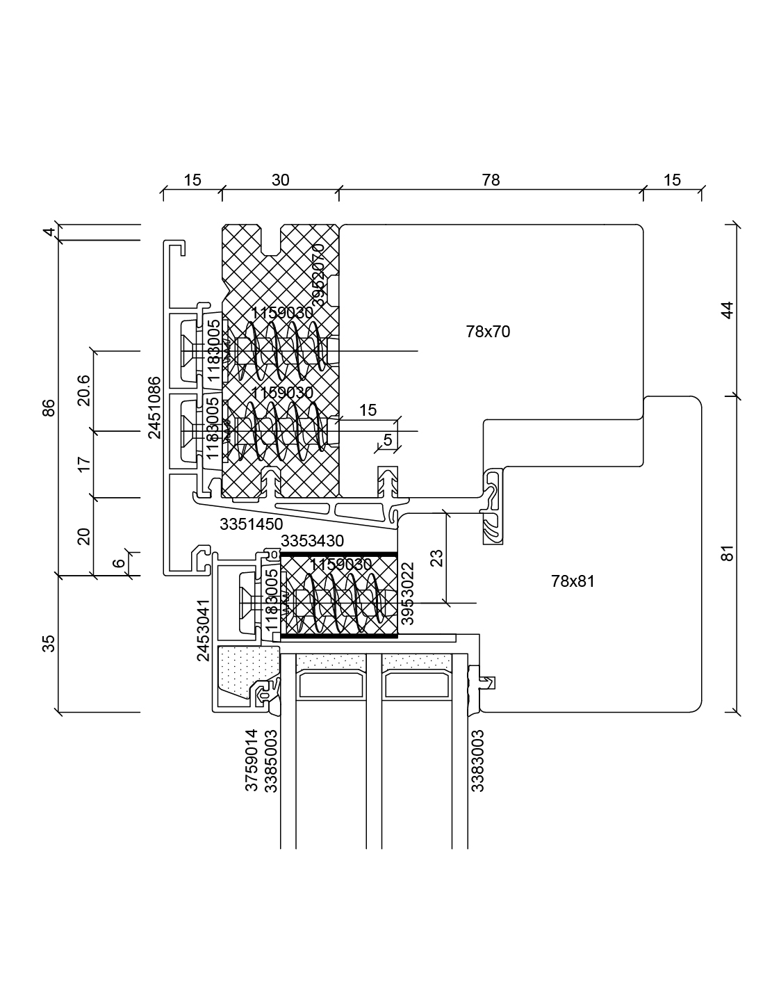 Passivhaus zertifizierte Konstruktion. Rahmenprofil und Flügelprofil bilden eine flächenversetzte Ebene. Zwischen Glas und Flügelprofil besteht ein Versatz von 18 mm Tiefe. Die Ansichtsbreite des sichtbaren Flügelprofils beträgt 35 mm und verläuft gerade, senkrecht zur Glasebene. Bei bestimmten statischen Anforderungen kann das Flügelprofil breiter ausgeführt werden. Die Entwässerung des Falzbereiches erfolgt durch verdeckte Stanzungen im unteren Profilquerstück des Rahmens. Optional kann eine sichtbare Entwässerung mit Abdeckkappe ausgeführt werden.